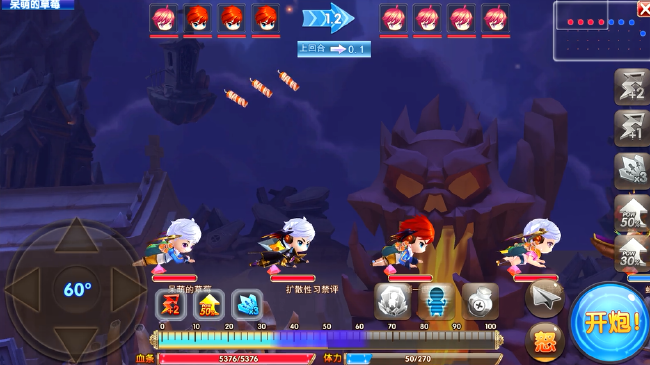 弹弹世界中,每一个角度的打法都是有自己独特的方式的。比如65度打法,从右打左的时候,所有的炮弹都会落在同一个点上喔,这样打法最擅长将地形破坏让地方跌入深渊死亡。同时,从左打右,所有炮弹落在一个点上的技巧就是将角度调成20度。除此之外还有30度、50度、半抛、高抛等打法。多掌握一种打法就多一分胜算呢。