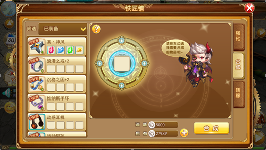合成可以添加人物的攻击、防御、敏捷、幸运四种属性,合成的操作在打造中完成,没有等级限制;