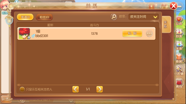 在主界面点击关系图标可以查看你关注和粉丝列表